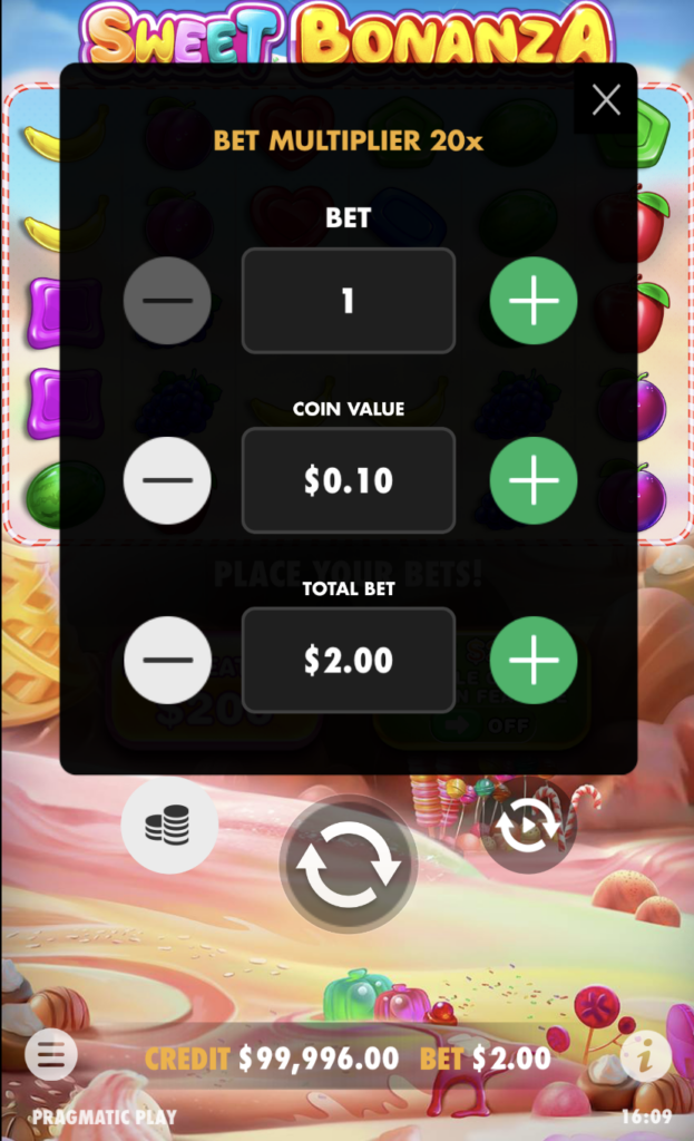 | Gerenciamento da banca | Os jogadores experientes entendem a importância do gerenciamento eficaz da banca. Sweet Bonanza é um jogo de alta volatilidade, com pagamentos potencialmente maiores, mas com ganhos menos frequentes. Dica: Estabeleça limites de ganhos e perdas, ajustando o valor de sua aposta com base em sua banca para obter uma experiência de jogo agradável e minimizar os riscos financeiros. |